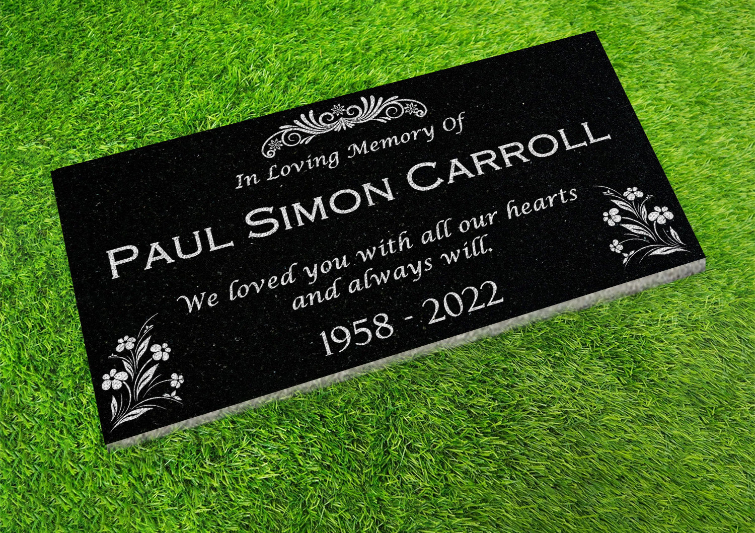 Custom Memorial Stone Black Granite, Memorial Grave Marker Headstone, Condolences Garden Marker